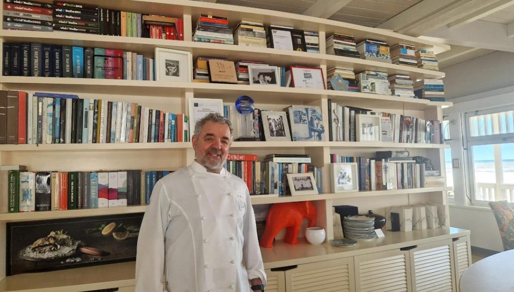 Si parla sempre più spesso di crisi del fine dining conseguente alla recessione nel settore del lusso, ma in un giorno feriale appena successivo alla Pasqua, uno dei 15 ristoranti italiani con tre stelle Michelin era al completo a pranzo. Siamo a Senigallia (An), costa Nord delle Marche, dove l’aria sa ancora di Romagna, e il ristorante è quello dello chef Mauro Uliassi, da 30 anni una colonna portante della cucina contemporanea italiana.